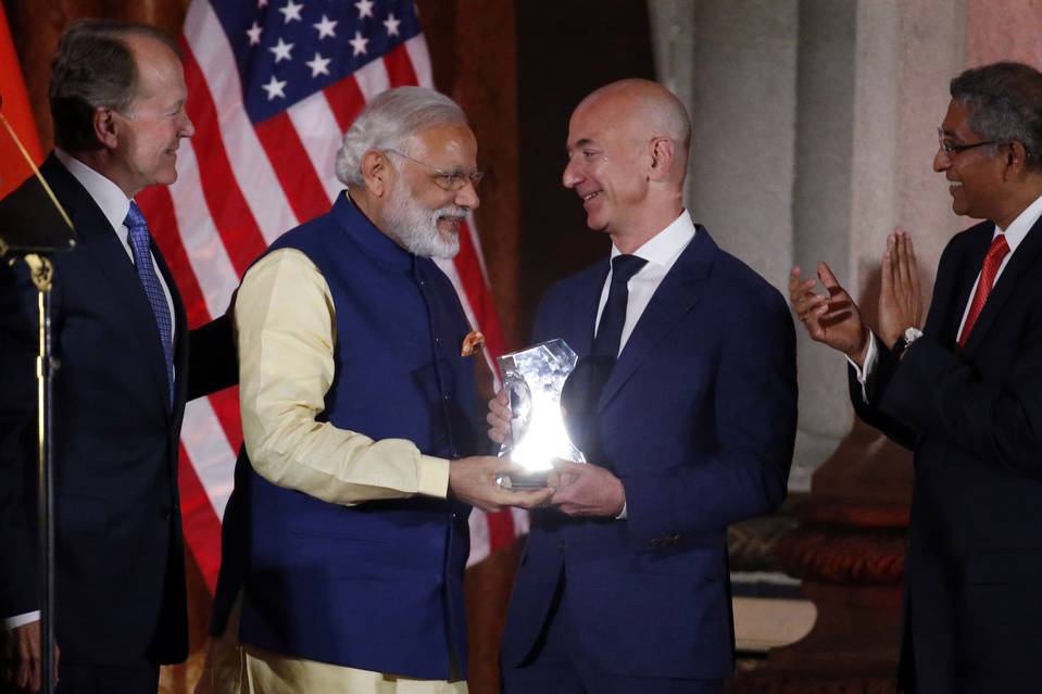 Chief Executive Jeff Bezos announced the plan at a meeting of business leaders Tuesday with the Indian Prime Minister Narendra Modi in Washington. Amazon sees “huge potential in the Indian economy,” Mr. Bezos said in a statement.