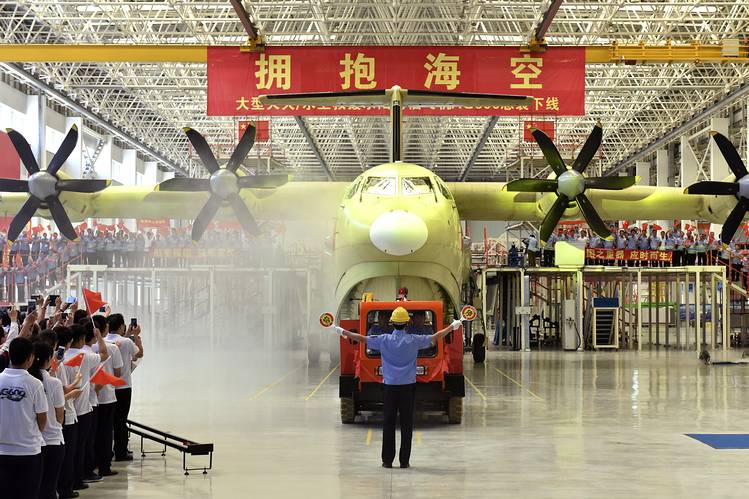 Chinese media said the AG600 giant aircraft, which rolled off a production line in Zhuhai in southern China on Saturday, will be used for marine rescue missions and forest fire fighting.