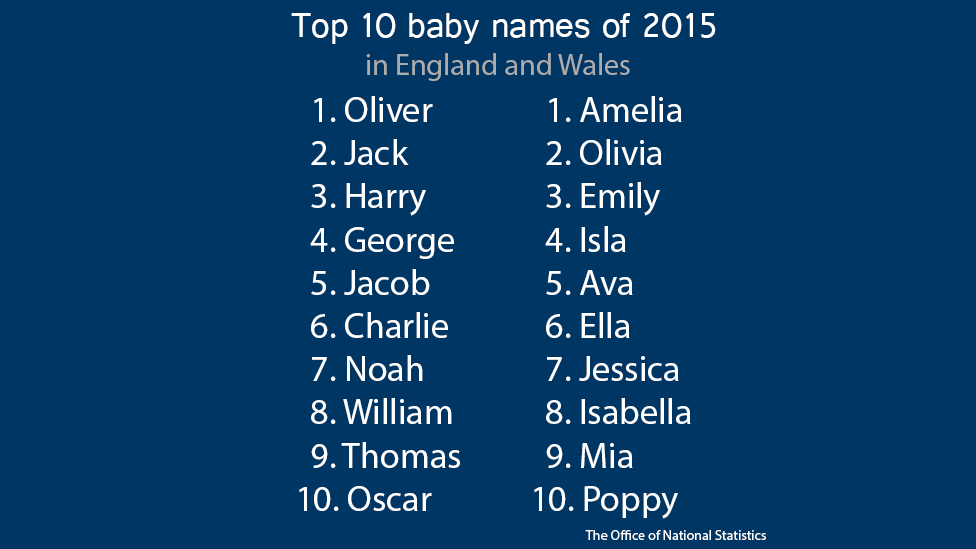 Amelia and Oliver were the most popular baby names in England and Wales in 2015