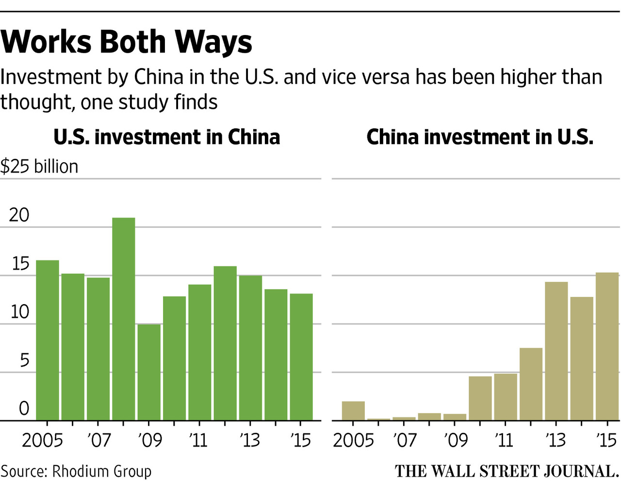 With funding by big U.S. businesses and trade groups, Rhodium counted $228 billion in 6,677 U.S. investments into China since 1990, plus 1,200 Chinese investments into the U.S. worth $64 billion. The figures are significantly higher than official numbers produced in each country.