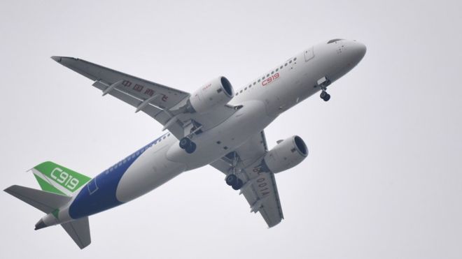 The C919 is designed to be a direct competitor to Boeing’s 737 and the Airbus A320.