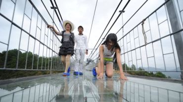 The glass-bottomed Brave Man’s Bridge in Hunan province connects two mountains